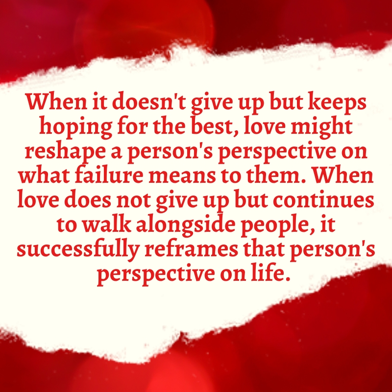 When it doesn’t give up but keeps hoping for the best, love might reshape a person’s perspective on what failure means to them.
